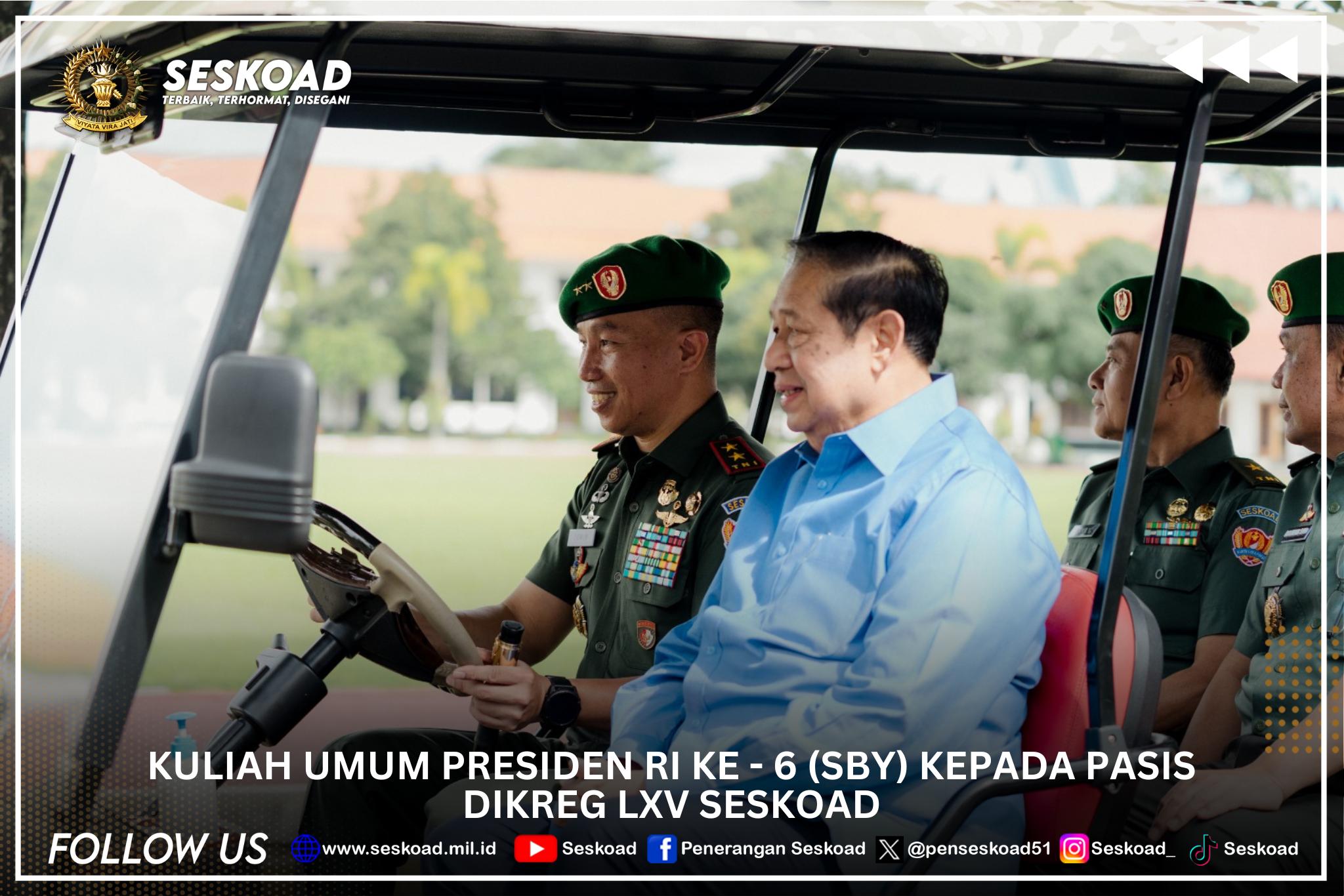 Kuliah Umum Presiden Ke-6 RI (SBY) kepada Pasis Dikreg LXV Seskoad