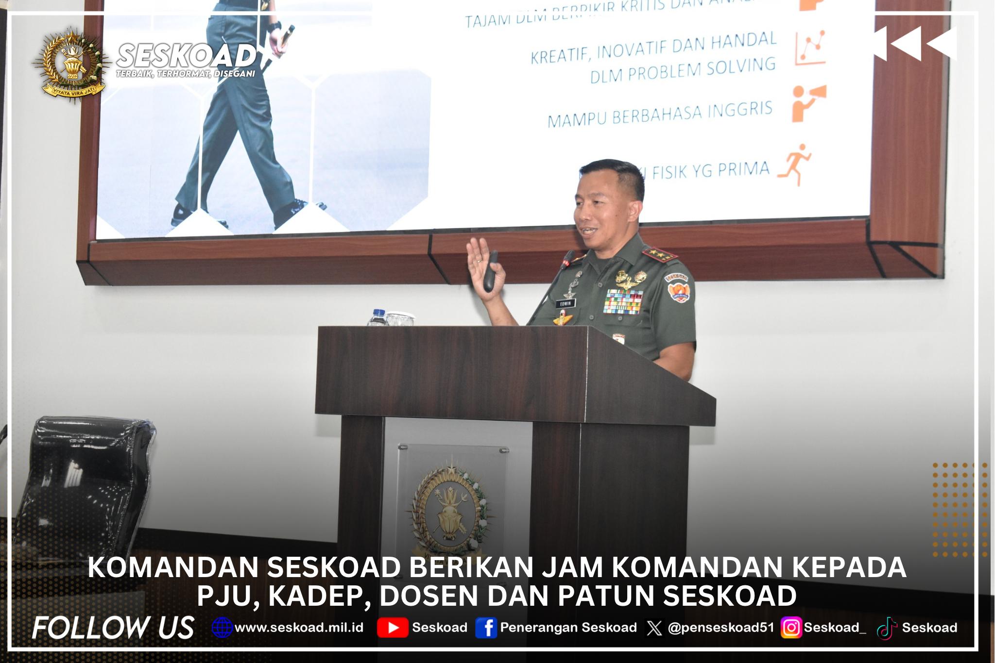 Komandan Seskoad berikan jam Komandan kepada PJU, Kadep, Dosen dan Patun Seskoad