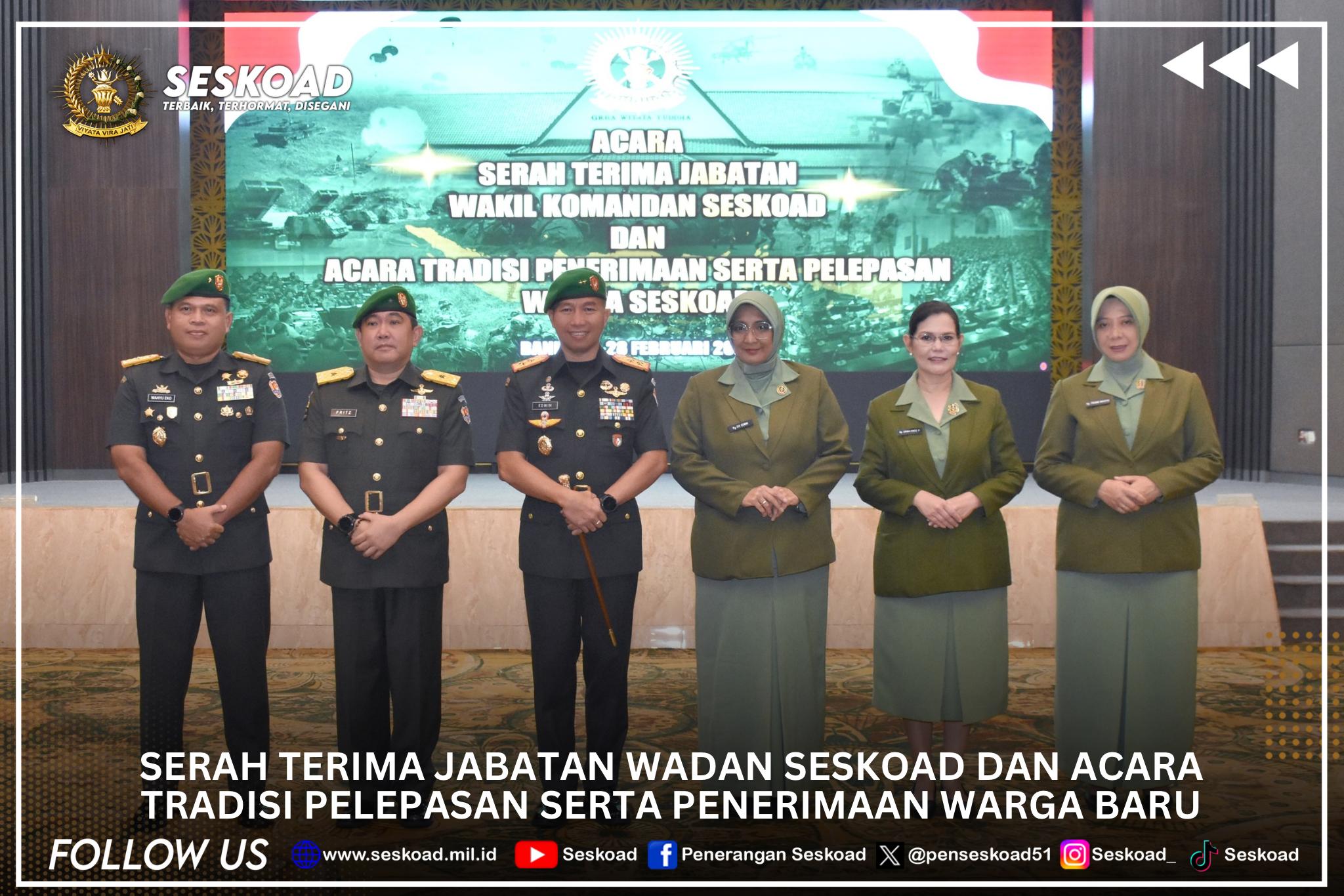Serah terimah jabatan Wadan Seskoad dan acara tradisi pelepasan serta penerimaan warga baru