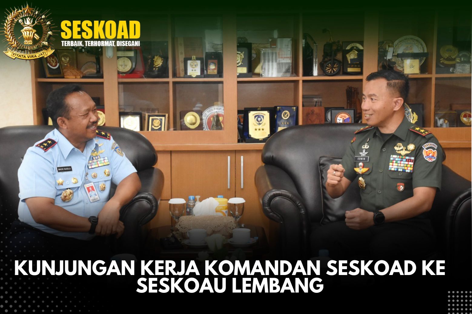 Lembang, 24 Desember 2024 - Dalam rangka meningkatkan hubungan kerjasama antar lembaga pendidikan TNI, Komandan Sekolah Staf dan Komando (Danseskoad) Mayjen TNI Edwin Adrian Sumantha melaksanakan kunjungan kerja sekaligus bersilaturahmi kepada Komandan Sekolah Staf dan Komando TNI Angkatan Udara (Danseskoau) Marsekal Muda TNI…