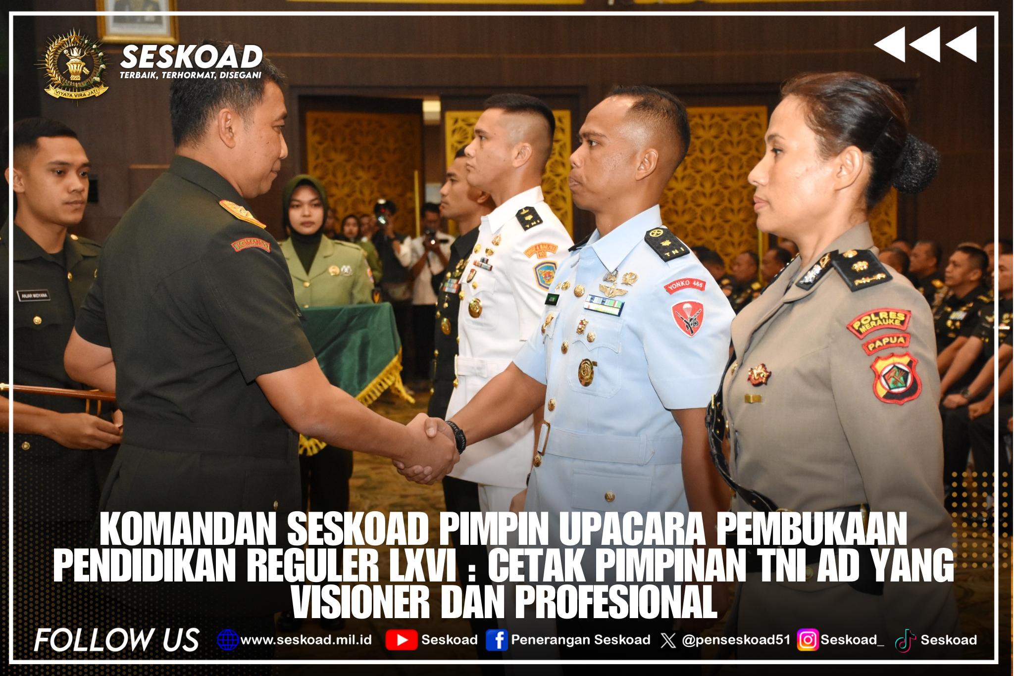 Komandan Seskoad Pimpin Upacara Pembukaan Pendidikan Reguler LXVI: Cetak Pemimpin TNI AD yang Visioner dan Profesional