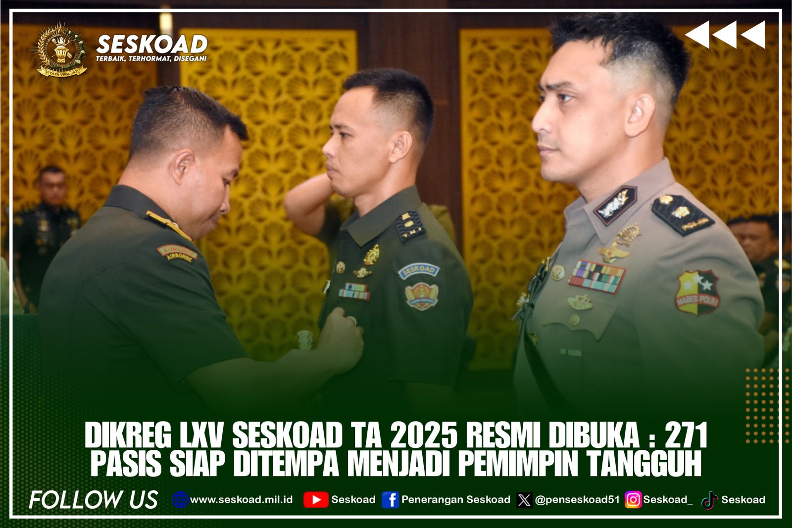 PENDIDIKAN REGULER LXV SESKOAD TA 2025 RESMI DIBUKA: 271 PERWIRA SIAP DITEMPA MENJADI PEMIMPIN TANGGUH