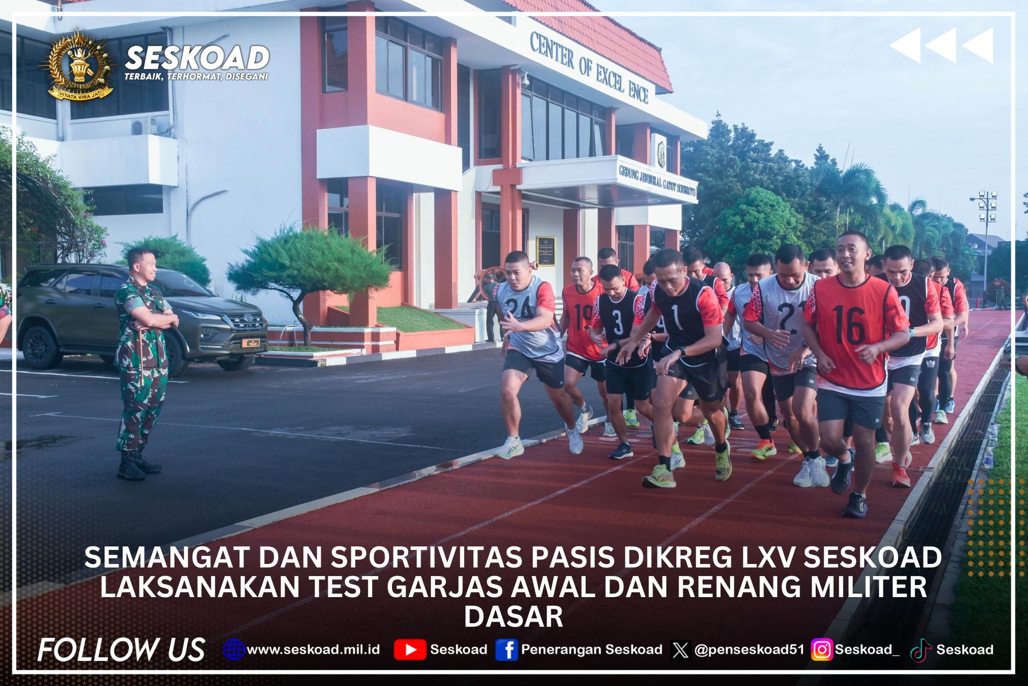 Semangat dan Sportivitas Pasis Dikreg LXV Seskoad Laksanakan Test Garjas Awal dan renang militer dasar