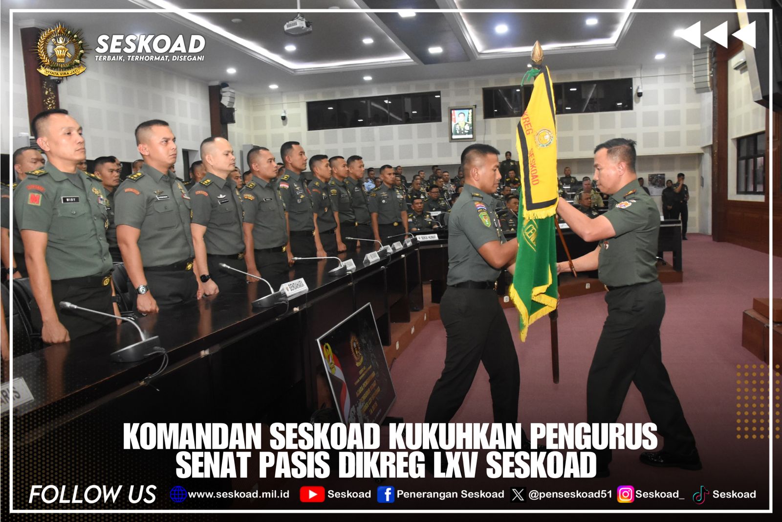 KOMANDAN SESKOAD KUKUHKAN PENGURUS SENAT PASIS DIKREG LXV