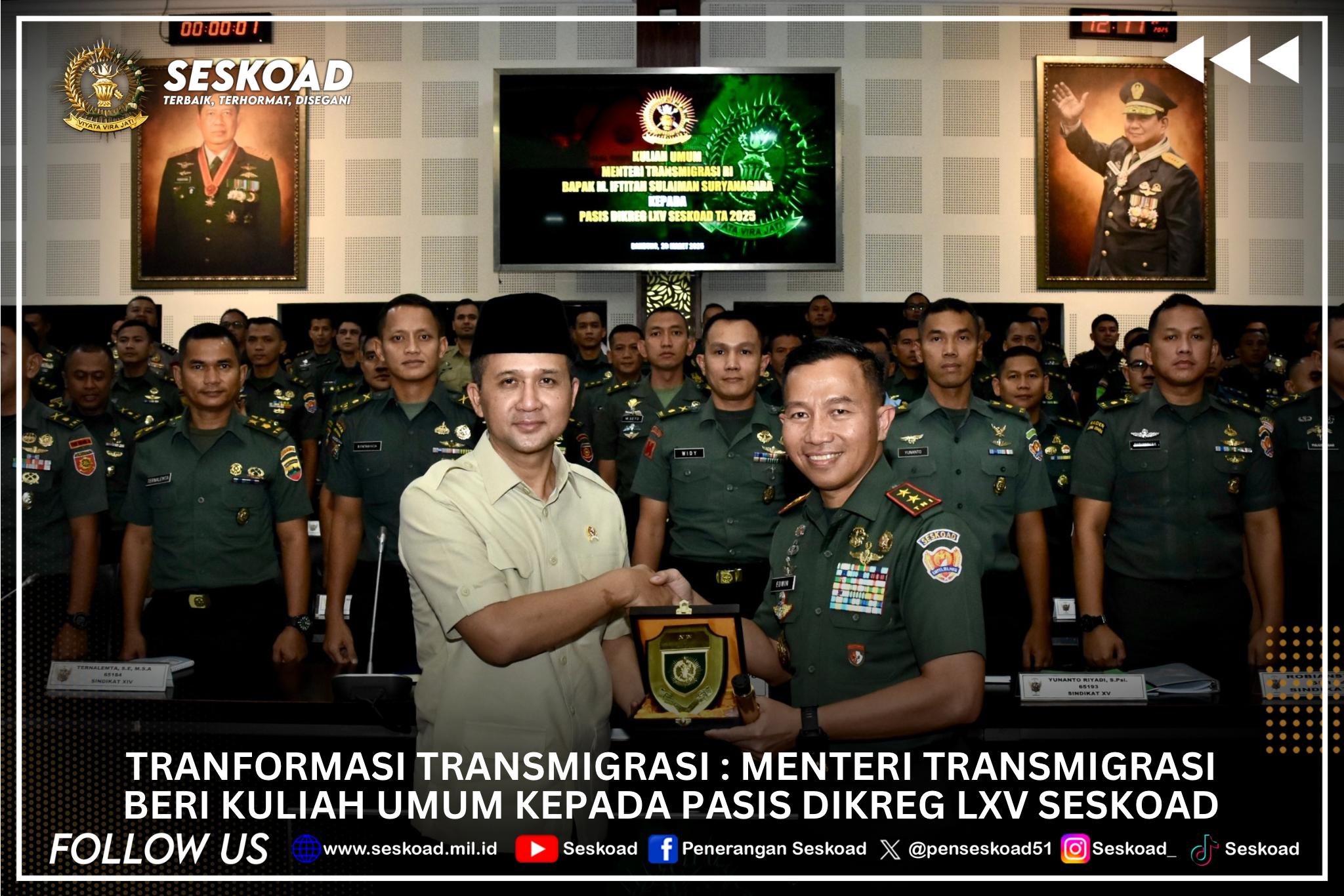 Transformasi Transmigrasi : Menteri Transmigrasi beri kuliah umum kepada Pasis Dikreg LXV Seskoad