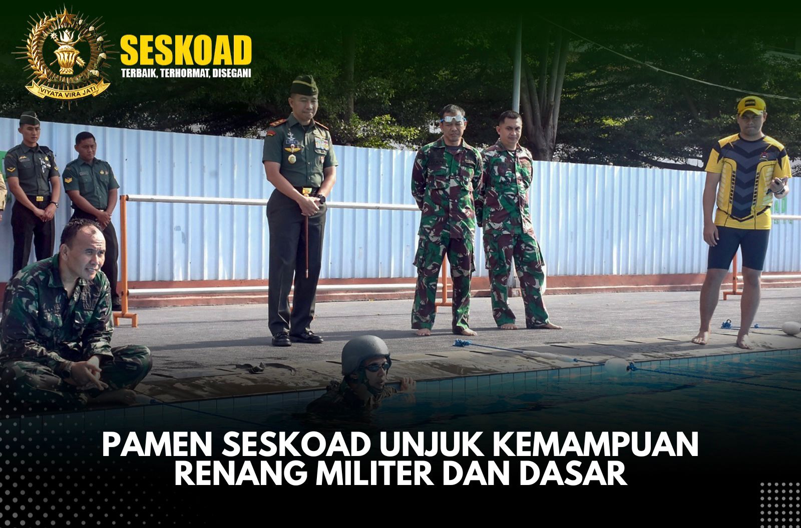 PAMEN SESKOAD UNJUK KEMAMPUAN RENANG MILITER DAN DASAR
