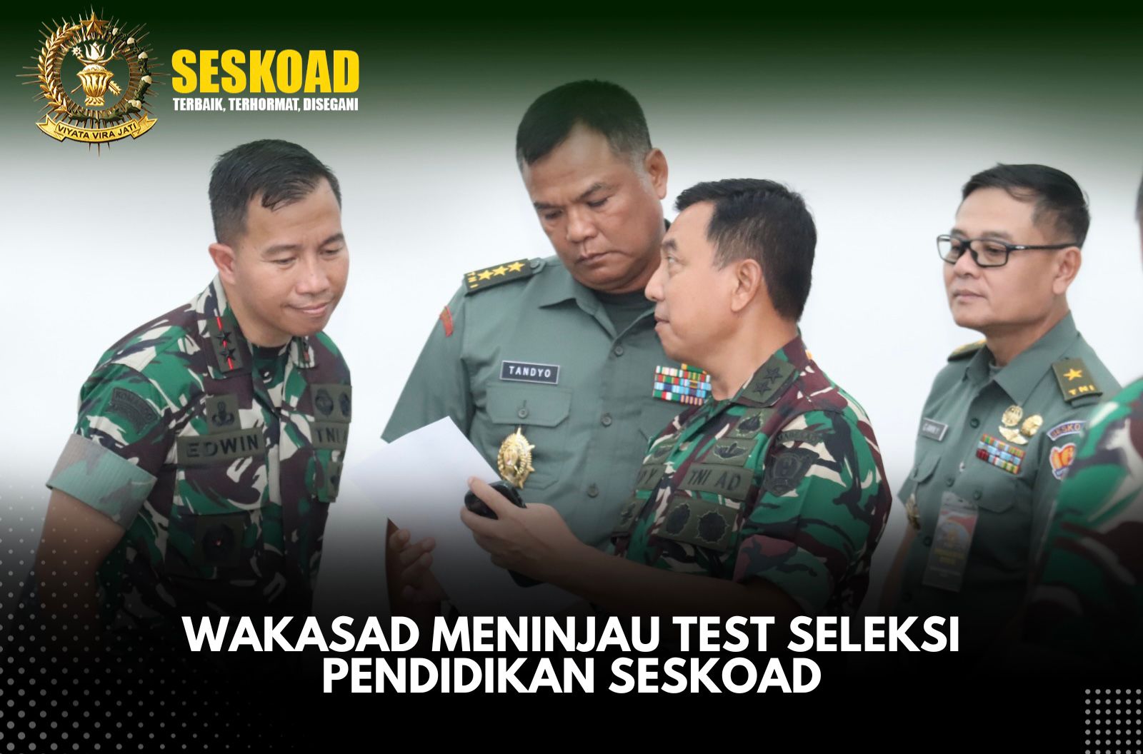 Wakasad Meninjau Tes Seleksi Pendidikan Seskoad di Seskoad